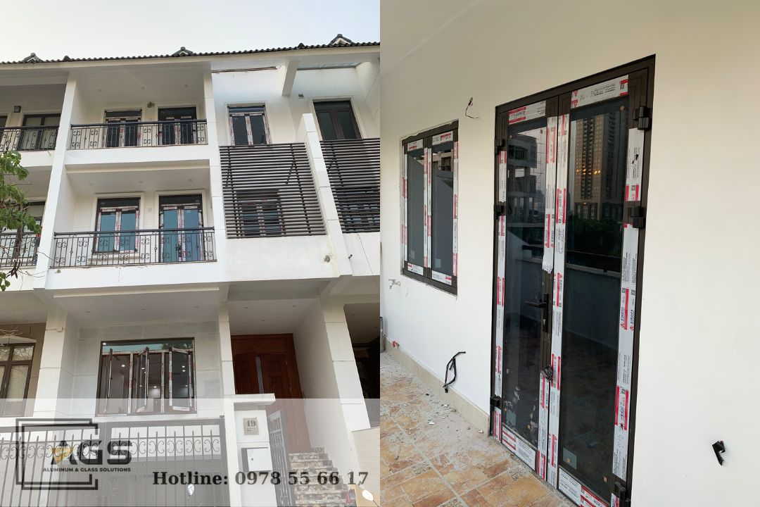 • Hạng mục: Cửa nhôm cầu cách nhiệt + cửa nhôm vân gỗ, kính hộp cản nhiệt Low-e, kết hợp phụ kiện Kinlong nhập khẩu chính hãng